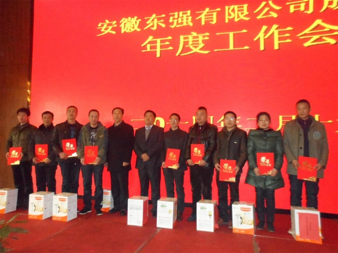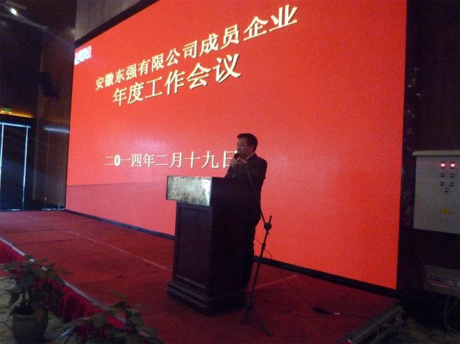 一元復(fù)始,萬象更新。為認真總結(jié)和回顧2013年度各項工作,并對2014年的生產(chǎn)經(jīng)營管理提出明確的目標任務(wù)和計劃。表彰先進,提升士氣,充分凝聚企業(yè)團隊的智慧和力量,以良好的團隊精神、團隊能力和團隊業(yè)績,確保2014年各項目標任務(wù)的圓滿完成和企業(yè)的長遠發(fā)展,2014年2月19日,公司在合肥同慶樓花園酒店召開了年度工作會議。出席會議的有公司領(lǐng)導,安徽東強、西站、鯤翼商貿(mào)全體員工,蕪湖康特、蕪湖東強、六安宏順、六安鯤鵬、六安東升中層以上管理者、獲獎人員及五年以上員工。