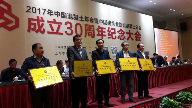 2017年10月25日公司董事長(zhǎng)倪總和總經(jīng)理??倕⒓恿嗽谖靼才e辦的《中國(guó)混凝土年會(huì)暨中國(guó)建筑業(yè)協(xié)會(huì)分會(huì)成立30周年紀(jì)念大會(huì)》,會(huì)上參與討論關(guān)于混凝土行業(yè)綠色發(fā)展以及企業(yè)轉(zhuǎn)型升級(jí),并榮獲《綠色生產(chǎn)示范企業(yè)》稱號(hào)。