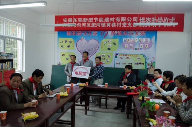 在捐資儀式上,董事長(zhǎng)倪修倫親手將十臺(tái)價(jià)值三萬(wàn)余元電腦,交給了涼亭小學(xué)校長(zhǎng)手上。董事長(zhǎng)說(shuō),作為一個(gè)成熟的企業(yè)來(lái)說(shuō),有責(zé)任關(guān)愛(ài)山區(qū)的教育事業(yè),今天的捐贈(zèng)活動(dòng)是關(guān)愛(ài)山區(qū)教育事業(yè)的第一步,今后要把關(guān)愛(ài)行動(dòng)持續(xù)下去??偨?jīng)理深情的說(shuō),今天回到家鄉(xiāng),回到母校,倍感親切,我懷著感恩的心,報(bào)答家鄉(xiāng),報(bào)答母校。合肥市包河區(qū)淝河鎮(zhèn)黃巷村黨總支也向涼亭小學(xué)捐贈(zèng)了電腦操作臺(tái),書(shū)記黃帥在捐贈(zèng)儀式上作了講話(huà)。
